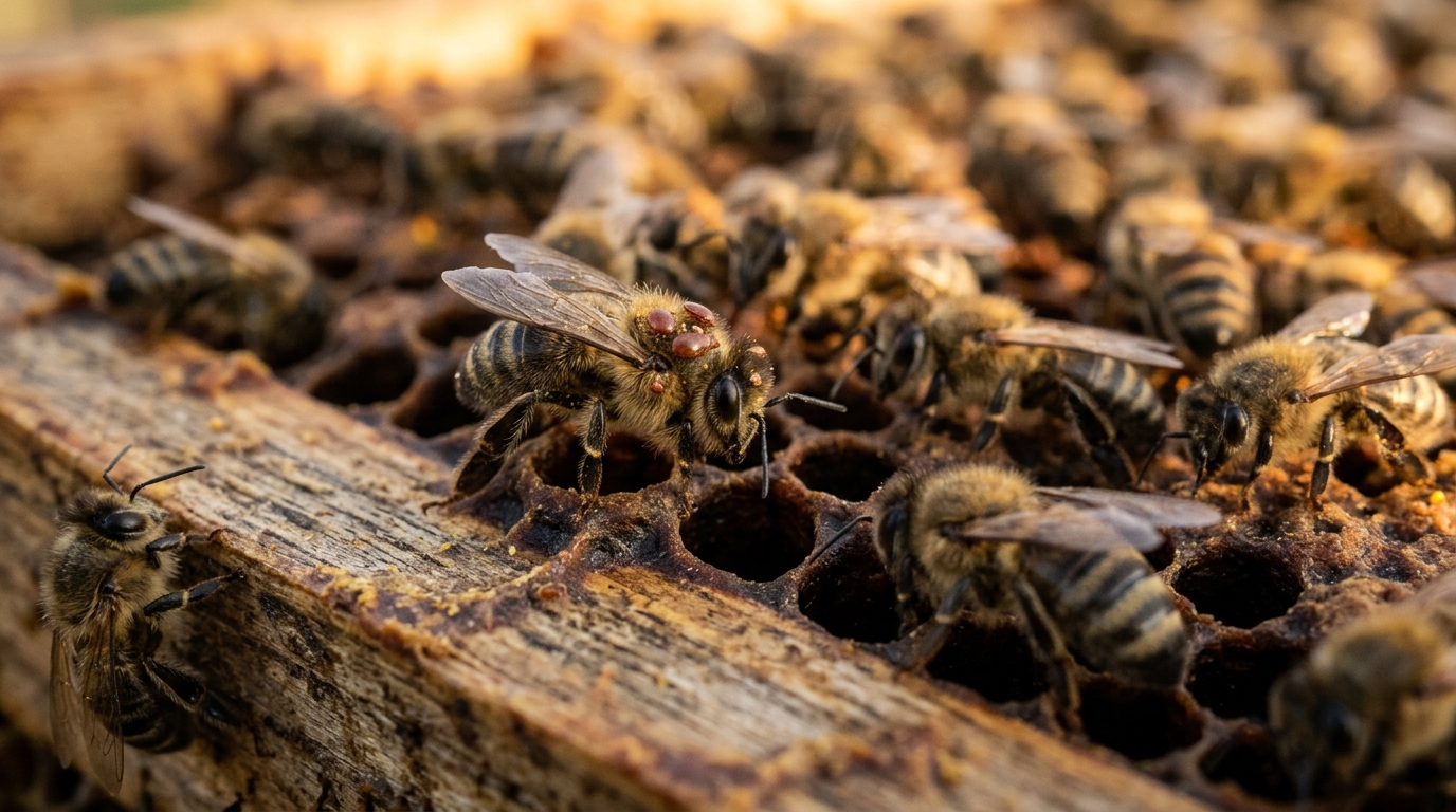 For a deeper look at the bee diseases that ride alongside varroa pressure — including the viruses that turn a high mite load into a March deadout — see our guide to Honey Bee Diseases Identification.
